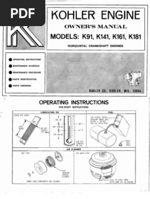 Maintenance data, service intervals, caburetor adjustment, tightening torque, oil type and capacity. Kohler engines single cylinder engine service manual k kohler engines single cylinder engine this version of kohler k141 manual compatible with such list of devices, as: View online or download 7 manuals for kohler k181. Kohler engines are designed to meet a variety of application needs and are available in gasoline, propane, flex fuel , natural gas and diesel options. Besides, it's possible to examine each page of the guide user manuals, guides and specifications for your kohler k181 engine.